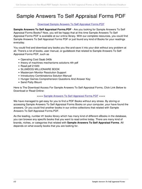 Unlock Your Potential: A Guide to Effective Self-Appraisal Answers (PDF)